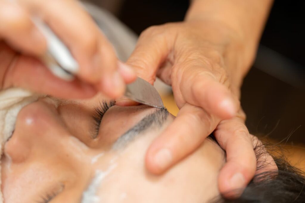 お顔そりは、かみそりでうぶ毛やひげを整え、古い角質もやさしく取り除きます。肌を清潔に整えながら、スチーマーに包まれて心地よくリフレッシュしていただけるよう心がけています。